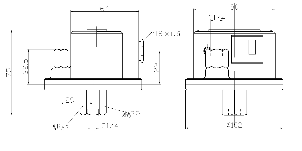 520/11DD差壓開關(guān)外形尺寸及安裝尺寸(單位:mm)