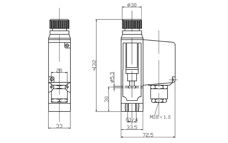 500/8D壓力開(kāi)關(guān)外形尺寸及安裝尺寸(單位:mm)