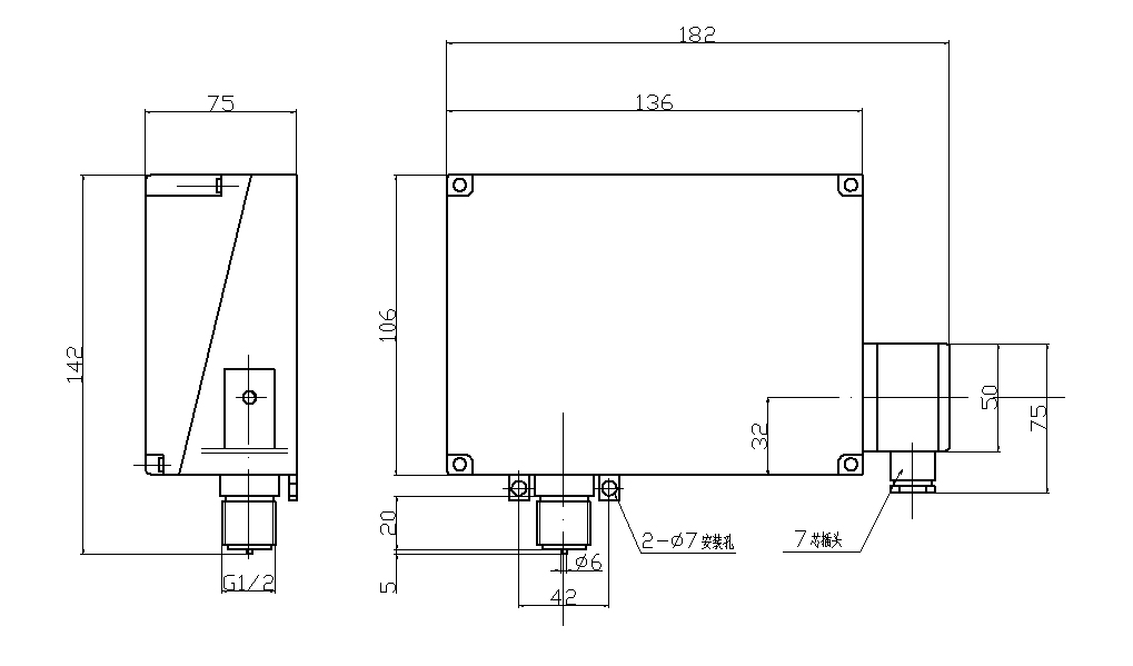 512/9D壓力開關(guān)外形尺寸及安裝尺寸(單位:mm)