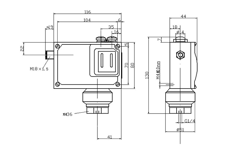 502/7D防爆壓力開關(guān)外形尺寸及安裝尺寸(單位:mm)