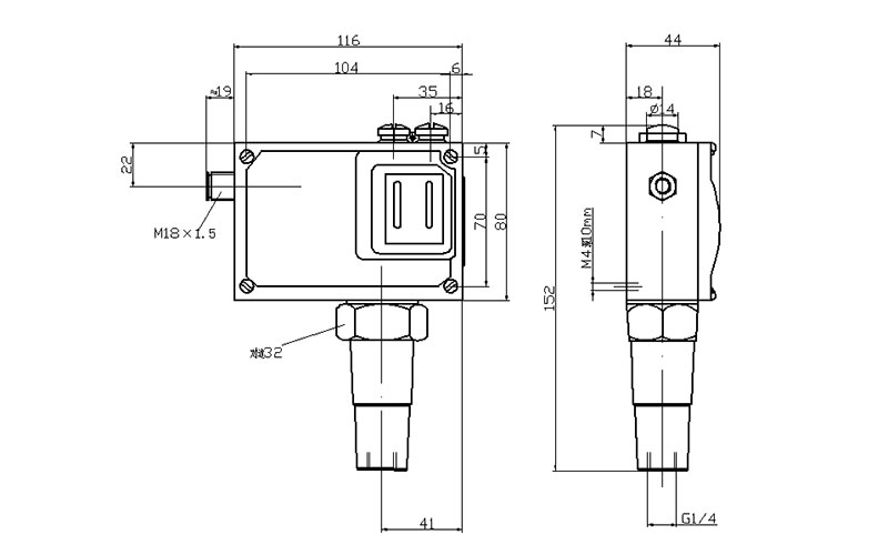 505/7D防爆壓力開關(guān)外形尺寸及安裝尺寸(單位:mm)