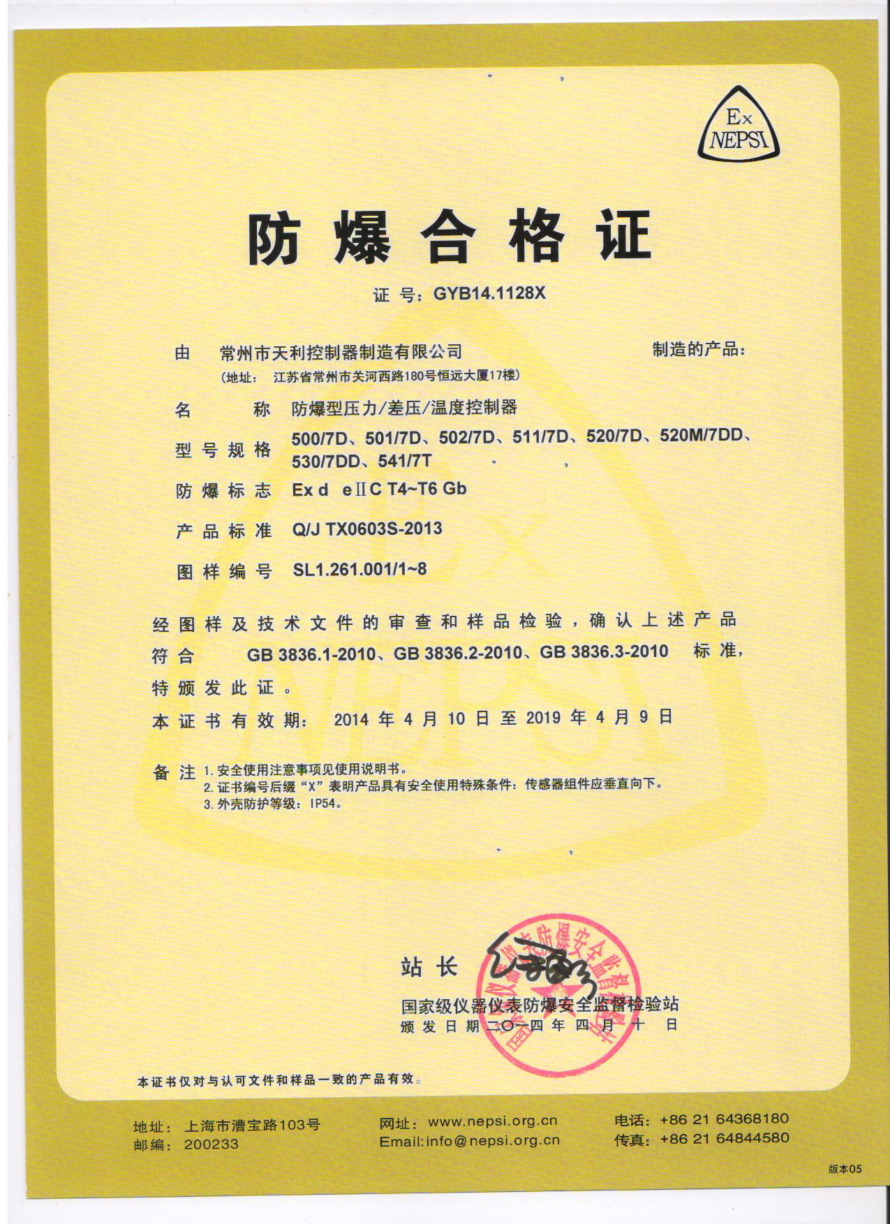 今天小編給大家介紹下本公司的防爆壓力開關(guān),本公司的防爆壓力開關(guān)有專業(yè)機構(gòu)的認證,下面是證書,可以放心使用。