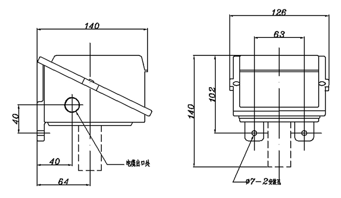500/6D 多值壓力開(kāi)關(guān)外形及安裝尺寸(單位:mm)